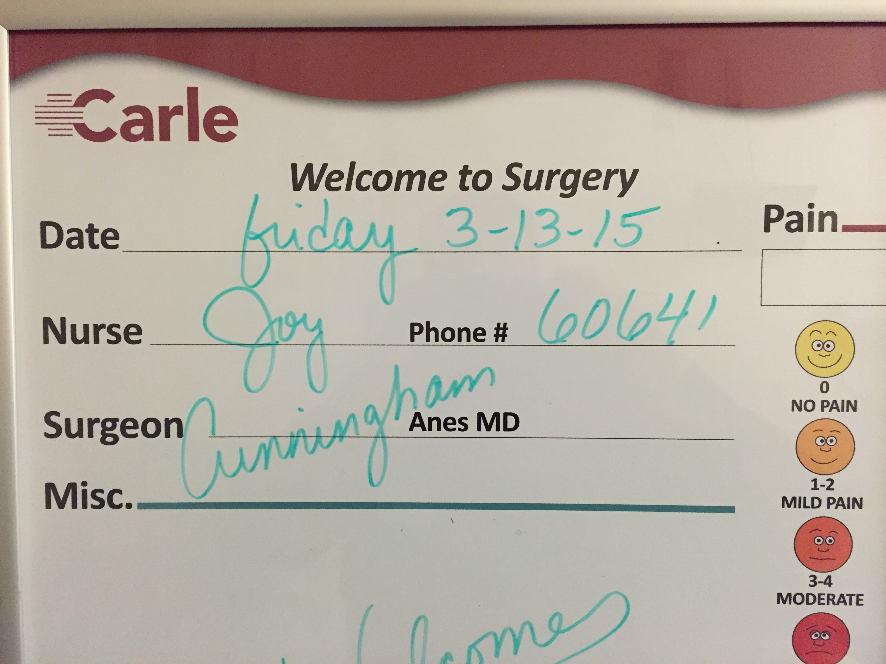 Less than 12 hours post-op, I am feeling pretty good. I am not sure if it is just wishful thinking, a great combination of meds, or being optimistic that this ordeal is actually close to being DONE! Whatever it is, I am not going to look a gift horse in the mouth.