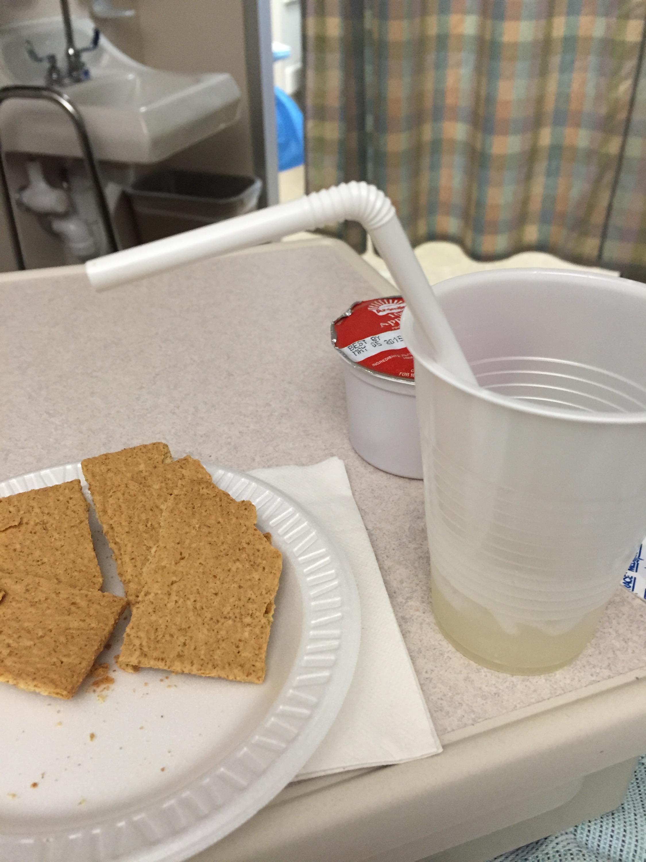 The procedure lasted a little longer than expected, but everything went well. Because of my history of issues with general anesthesia, I was given some extra meds at the end of the surgery, so that they were in full effect during my recovery. Once I was awake and moved into a post-op room, I was given a list of snack options. For some reason, graham crackers and apple juice sounded like the perfect snack. And for the first time in three months, I used a straw! Ok that doesn’t seem like a big deal, but for me it seemed like an incredible step to recovery!