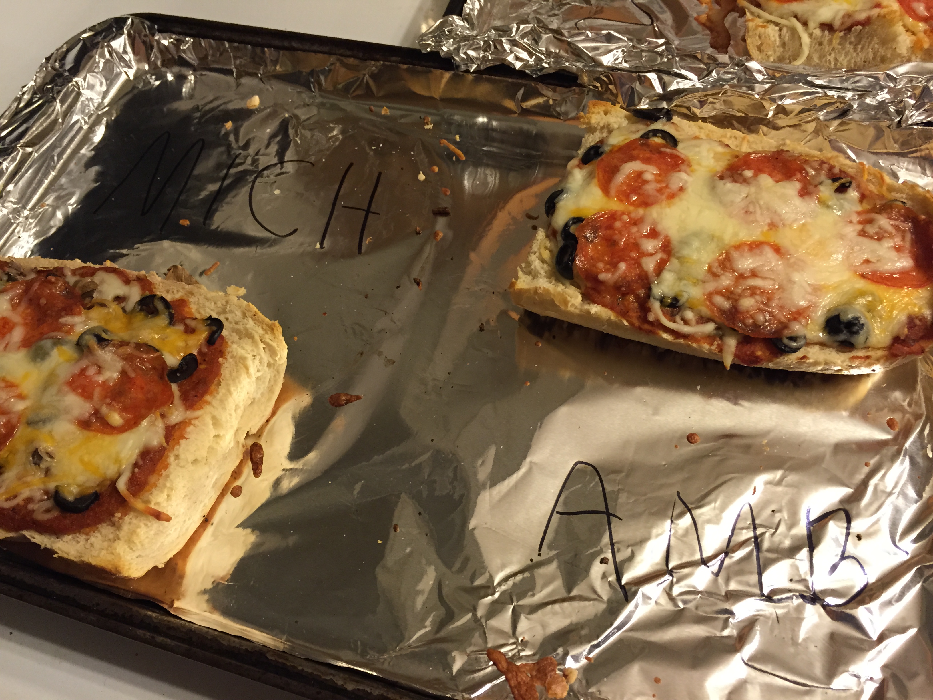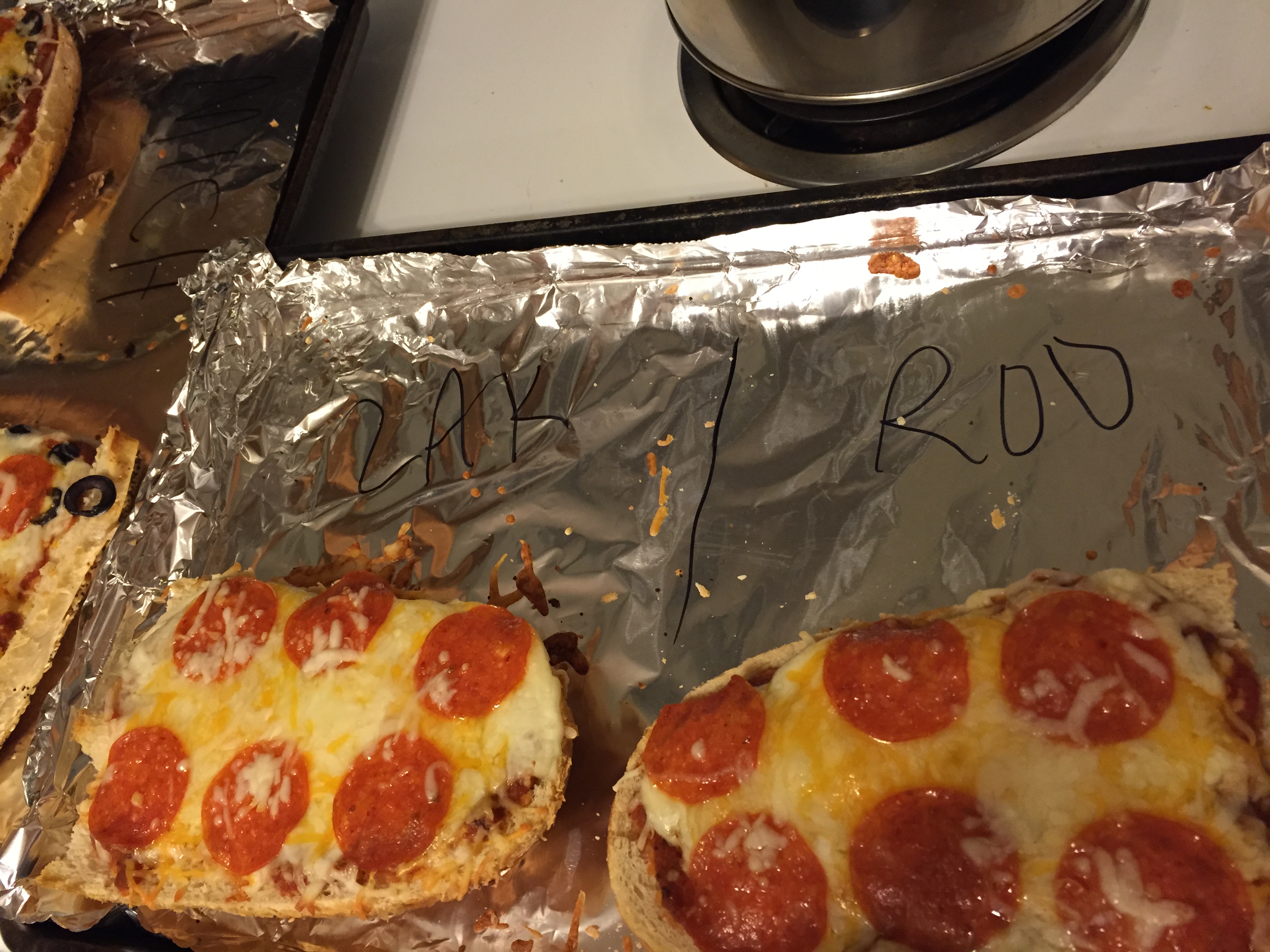 Feeling pretty good with residual “good drugs” from the hospital and the recommended first dose of pain meds coursing through my veins, I decided to make Italian bread pizzas while waiting for Michael to get home from picking Andrew up at school, picking up the rest of my prescriptions and getting an oil change. The oil change wasn’t really on the list, but CVS was really backed up. The prescriptions we dropped off at three still weren’t ready at 6, so they needed to kill some time.