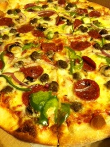 Today’s holiday is pizza with the works minus anchovies. Lucky for me this means I don’t have to cook!