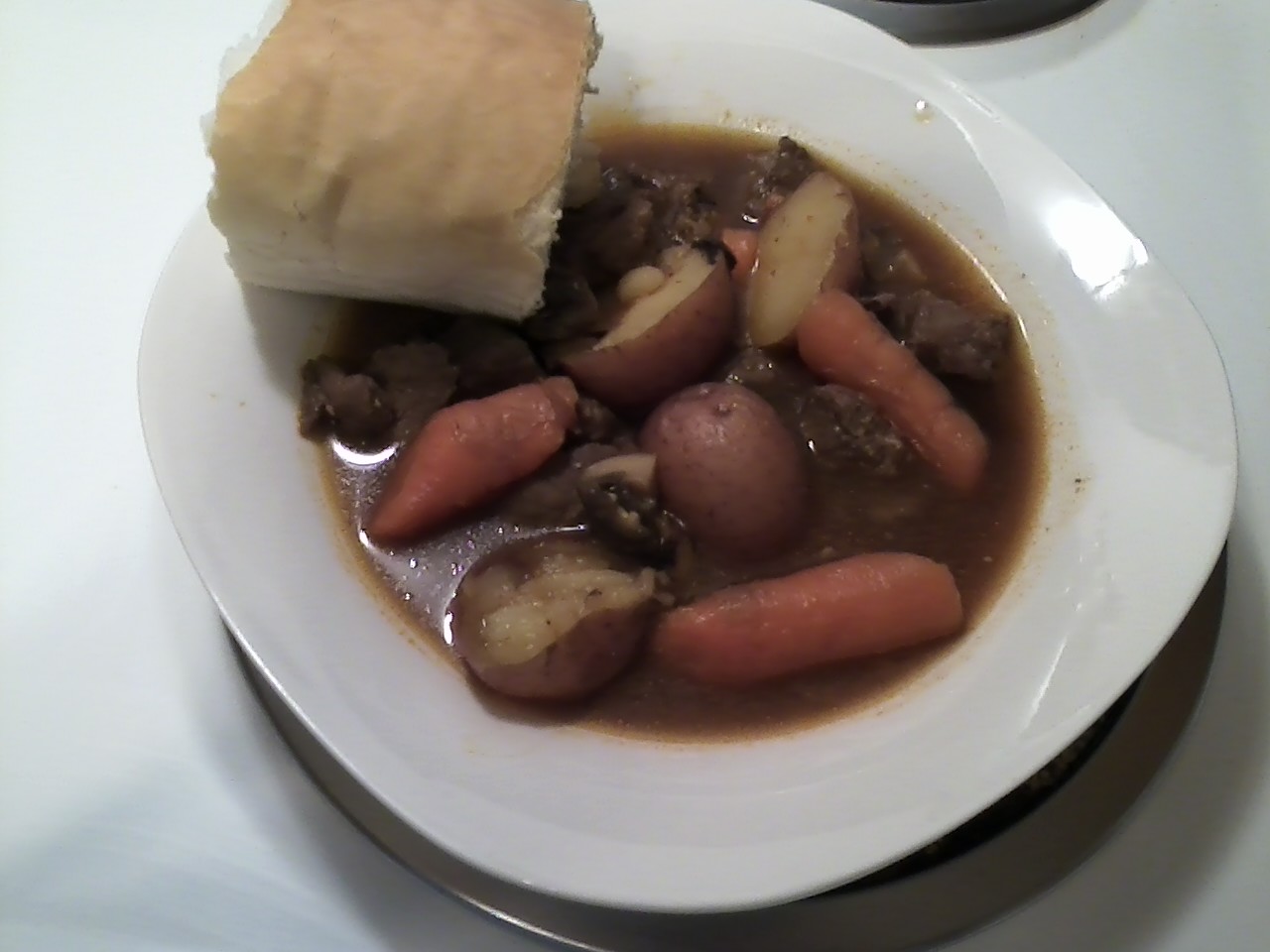 I served my stew with a piece of a loaf of bread from Jimmy Johns! (Only 49 cents!)